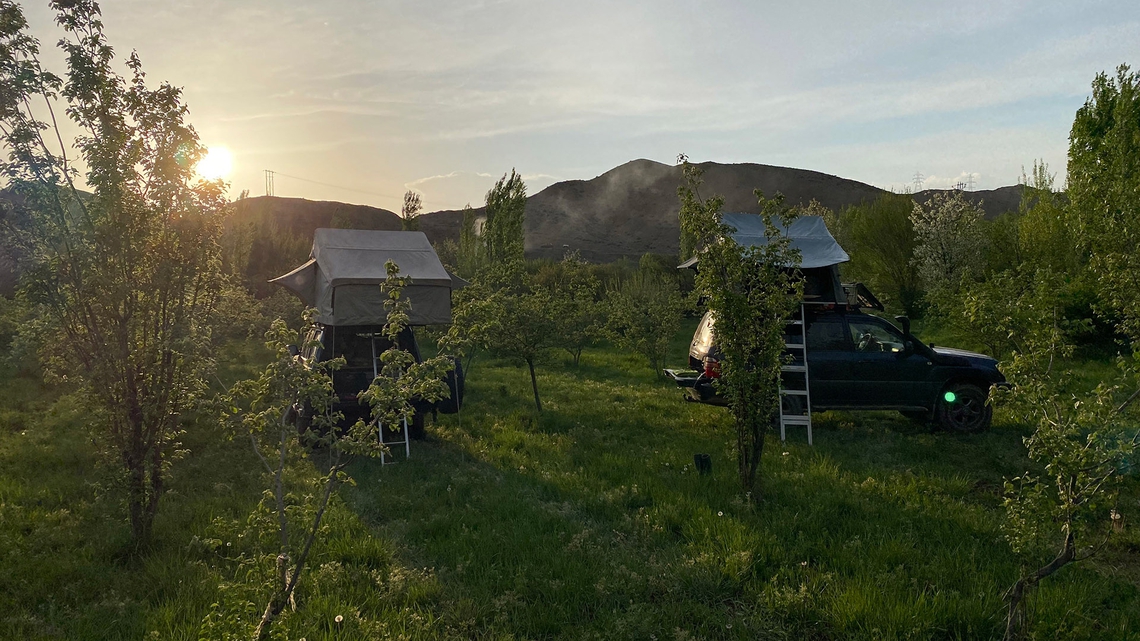 Bart: “Wat ons enorm heeft verrast was de Alamut Vallei. Na een steile bergpas kwamen we uit in een groene vallei. In het midden stroomde een rivier en aan weerszijde zagen we bergen met besneeuwde pieken. Door de vruchtbare grond in de vallei wordt allerlei fruit geteeld. Hier ontmoetten we onze vrienden Nathan en Linda (@maisonwheels), een Nederlands stel die ook op reis is met hun Toyota Land cruiser. Ted doet het goed in de bergen. Hij rijdt comfortabel, de motor wordt niet warm en de smalle wegen zijn goed te doen.”